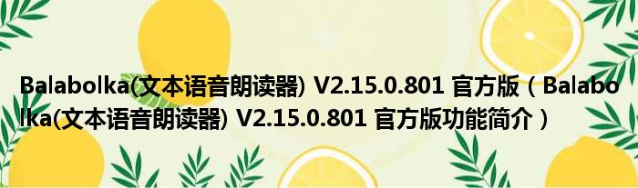 Balabolka(文本语音朗读器) V2.15.0.801 官方版(Balabolka(文本语音朗读器) V2.15.0.801 官方版功能简介)