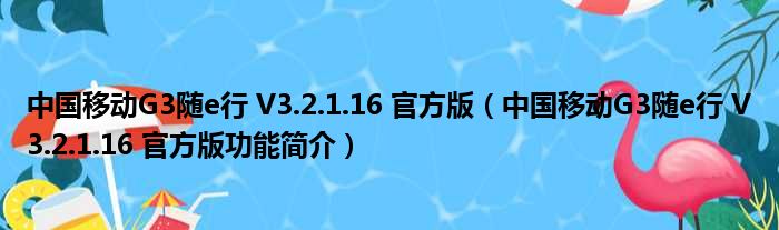 中国移动G3随e行 V3.2.1.16 官方版(中国移动G3随e行 V3.2.1.16 官方版功能简介)