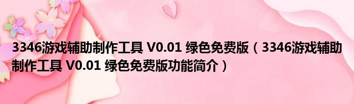 3346游戏辅助制作工具 V0.01 绿色免费版(3346游戏辅助制作工具 V0.01 绿色免费版功能简介)