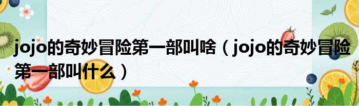 jojo的奇妙冒险第一部叫啥(jojo的奇妙冒险第一部叫什么)