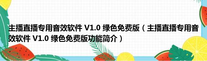 主播直播专用音效软件 V1.0 绿色免费版(主播直播专用音效软件 V1.0 绿色免费版功能简介)