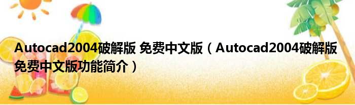 Autocad2004破解版 免费中文版(Autocad2004破解版 免费中文版功能简介)
