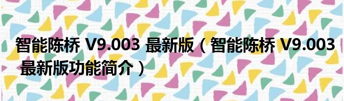 智能陈桥 V9.003 最新版(智能陈桥 V9.003 最新版功能简介)