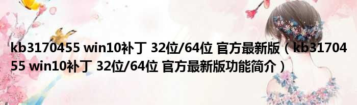 kb3170455 win10补丁 32位/64位 官方最新版(kb3170455 win10补丁 32位/64位 官方最新版功能简介)