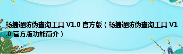 畅捷通防伪查询工具 V1.0 官方版(畅捷通防伪查询工具 V1.0 官方版功能简介)