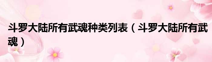 斗罗大陆所有武魂种类列表(斗罗大陆所有武魂)