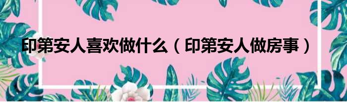 印第安人喜欢做什么(印第安人做房事)