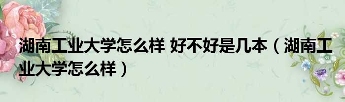 湖南工业大学怎么样 好不好是几本(湖南工业大学怎么样)