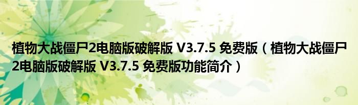 大家好,关于植物大战僵尸2电脑版破解版 V3.7.5 免费版,植物大战僵尸2电脑版破解版 V3.7.5 免费版功能简介这个很多人还不知道,小勒来为大家解答以上的问题,现在让我们一起来看看吧!