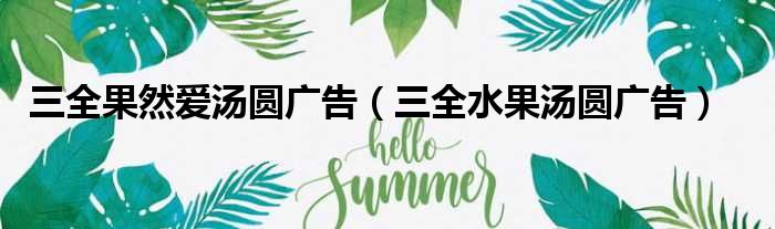 导读 大家好,今天小六子来为大家解答以下的问题,关于三全果然爱汤圆广告,三全水果汤圆广告这个很多人还不知道,现在让我们一起来看看吧!1、9