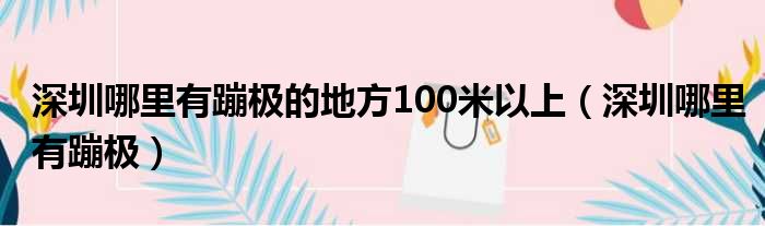 深圳哪里有蹦极的地方100米以上(深圳哪里有蹦极)