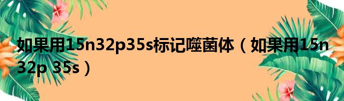 导读 大家好,今天小六子来为大家解答以下的问题,关于如果用15n32p35s标记噬菌体,如果用15n 32p 35s这个很多人还不知道,现在让我们一起来看