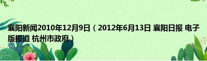 导读 大家好,今天小六子来为大家解答以下的问题,关于襄阳新闻2010年12月9日,2012年6月13日 襄阳日报 电子版报道 杭州市政府这个很多人还不