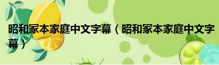 导读 大家好,今天小六子来为大家解答以下的问题,关于昭和冢本家庭中文字幕,昭和冢本家庭中文字幕这个很多人还不知道,现在让我们一起来看看吧
