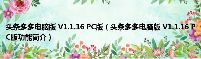 头条多多电脑版 V1.1.16 PC版(头条多多电脑版 V1.1.16 PC版功能简介)