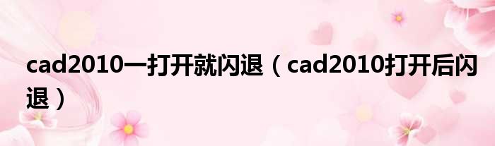 cad2010一打开就闪退(cad2010打开后闪退)