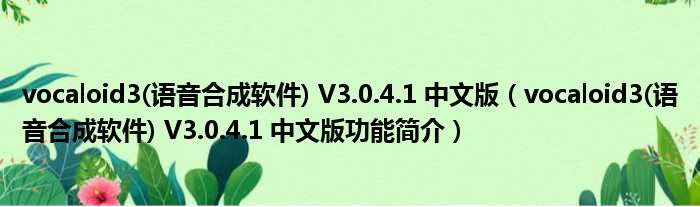 vocaloid3(语音合成软件) V3.0.4.1 中文版(vocaloid3(语音合成软件) V3.0.4.1 中文版功能简介)