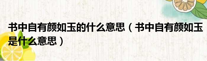 书中自有颜如玉的什么意思(书中自有颜如玉是什么意思)