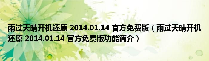 雨过天晴开机还原 2014.01.14 官方免费版(雨过天晴开机还原 2014.01.14 官方免费版功能简介)
