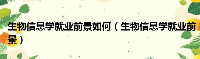 生物信息学就业前景如何(生物信息学就业前景)