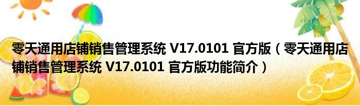零天通用店铺销售管理系统 V17.0101 官方版(零天通用店铺销售管理系统 V17.0101 官方版功能简介)