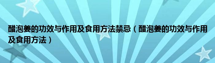 醋泡姜的功效与作用及食用方法禁忌(醋泡姜的功效与作用及食用方法)