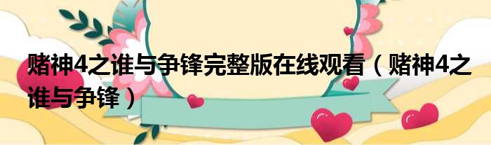 导读 大家好,今天小六子来为大家解答以下的问题,关于赌神4之谁与争锋完整版在线观看,赌神4之谁与争锋这个很多人还不知道,现在让我们一起来看