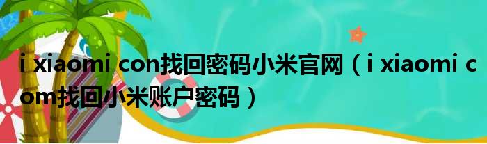 i xiaomi con找回密码小米官网(i xiaomi com找回小米账户密码)