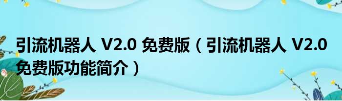 引流机器人 V2.0 免费版(引流机器人 V2.0 免费版功能简介)