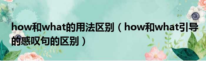 大家好,今天小六子来为大家解答以下的问题,关于how和what的用法区别,how和what引导的感叹句的区别这个很多人还不知道,现在让我们一起来看看吧!