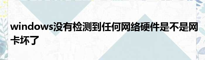 导读 大家好,今天小六子来为大家解答以下的问题,关于windows没有检测到任何网络硬件是不是网卡坏了这个很多人还不知道,现在让我们一起来看看吧