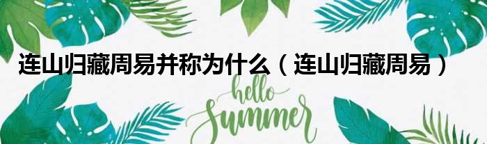 大家好,今天小六子来为大家解答以下的问题,关于连山归藏周易并称为什么,连山归藏周易这个很多人还不知道,现在让我们一起来看看吧!
