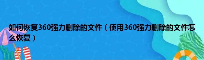 如何恢复360强力删除的文件(使用360强力删除的文件怎么恢复)