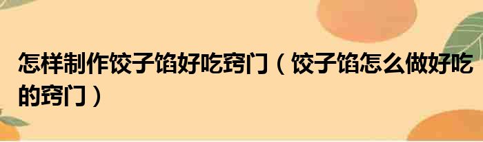 怎样制作饺子馅好吃窍门(饺子馅怎么做好吃的窍门)