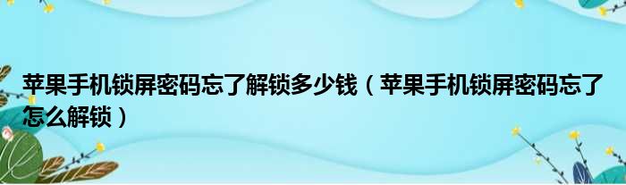 苹果手机锁屏密码忘了解锁多少钱(苹果手机锁屏密码忘了怎么解锁)
