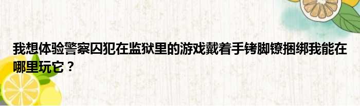 导读 大家好,今天小六子来为大家解答以下的问题,关于我想体验警察囚犯在监狱里的游戏戴着手铐脚镣捆绑我能在哪里玩它?这个很多人还不知道,现