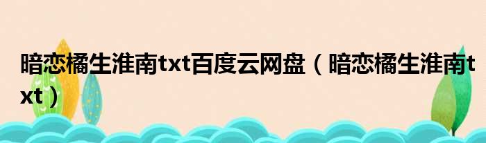 暗恋橘生淮南txt百度云网盘(暗恋橘生淮南txt)