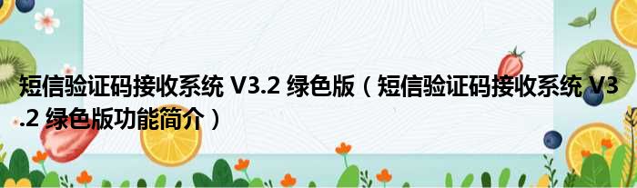 短信验证码接收系统 V3.2 绿色版(短信验证码接收系统 V3.2 绿色版功能简介)