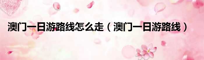 导读 大家好,今天小六子来为大家解答以下的问题,关于澳门一日游路线怎么走,澳门一日游路线这个很多人还不知道,现在让我们一起来看看吧!1、18