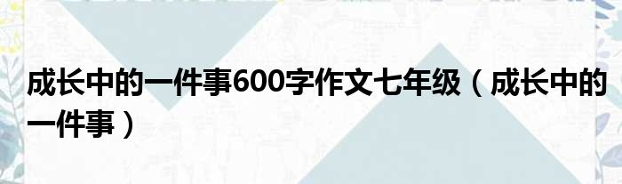 大家好,今天小六子来为大家解答以下的问题,关于成长中的一件事600字作文七年级,成长中的一件事这个很多人还不知道,现在让我们一起来看看吧!