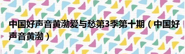 导读 大家好,今天小六子来为大家解答以下的问题,关于中国好声音黄渤爱与愁第3季第十期,中国好声音黄渤这个很多人还不知道,现在让我们一起来看