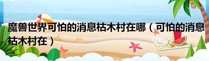 魔兽世界可怕的消息枯木村在哪(可怕的消息枯木村在)