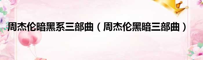 周杰伦暗黑系三部曲(周杰伦黑暗三部曲)