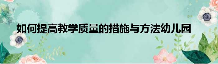 大家好,今天小六子来为大家解答以下的问题,关于如何提高教学质量的措施与方法幼儿园这个很多人还不知道,现在让我们一起来看看吧!