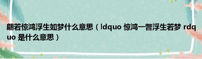 翩若惊鸿浮生如梦什么意思(ldquo 惊鸿一瞥浮生若梦 rdquo 是什么意思)