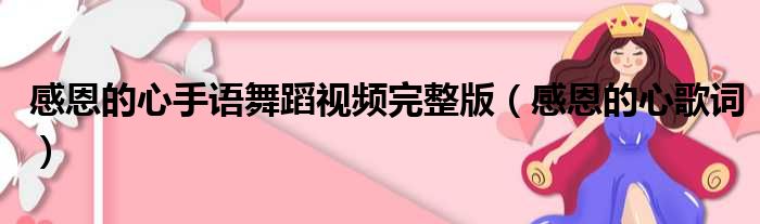 导读 大家好,今天小六子来为大家解答以下的问题,关于感恩的心手语舞蹈视频完整版,感恩的心歌词这个很多人还不知道,现在让我们一起来看看吧!1