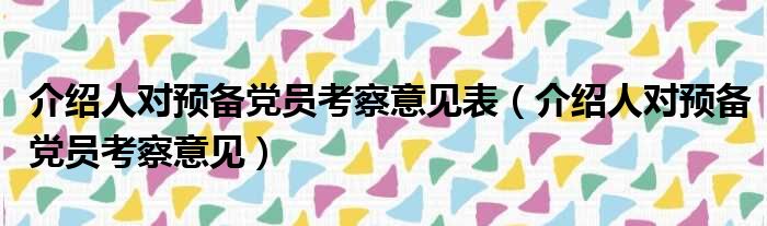导读 大家好,今天小六子来为大家解答以下的问题,关于介绍人对预备党员考察意见表,介绍人对预备党员考察意见这个很多人还不知道,现在让我们一