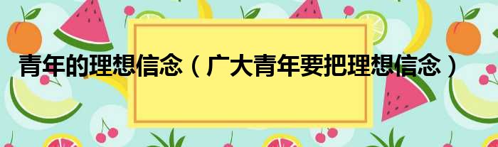 大家好,今天小六子来为大家解答以下的问题,关于青年的理想信念,广大青年要把理想信念这个很多人还不知道,现在让我们一起来看看吧!