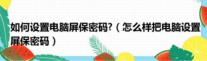 如何设置电脑屏保密码?(怎么样把电脑设置屏保密码)
