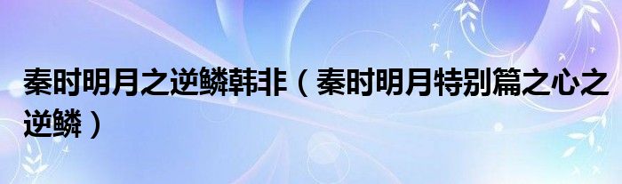 导读 大家好,今天小六子来为大家解答以下的问题,关于秦时明月之逆鳞韩非,秦时明月特别篇之心之逆鳞这个很多人还不知道,现在让我们一起来看看